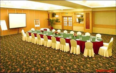 擺設形式:將桌子連接著擺放成長方形,在長方形的前方開口,椅子擺在桌子外圍,通常開口處會擺放放置投影儀的桌子,中間通常會放置綠色植物以做裝飾;