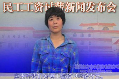 近日,伍方會議服務看到一段“民工召開討薪新聞發(fā)布會”的視頻在網(wǎng)絡上走紅。