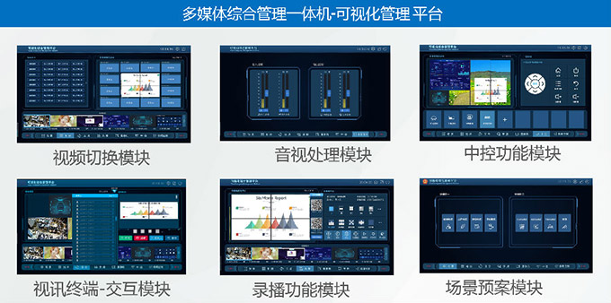 (1)媒體綜合一體機方案融合了六大系統(tǒng)功能模塊,避免了由于多種設(shè)備堆積、連接復雜、故障點繁多等造成建設(shè)隱患。